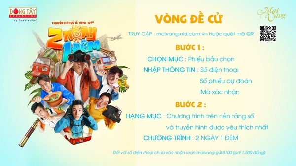 Gần đây nhất, 2 Ngày 1 Đêm phiên bản Việt Nam còn lọt vào Top 8 hạng mục “Best Adaptation of An Existing Format” giải Chương trình truyền hình châu Á 2022 (Asian Television Awards – ATA) được tổ chức lần thứ 27. Đây là giải thưởng được đề cử bởi hơn 300 công ty sản xuất nội dung trên toàn khu vực Châu Á. Trong hạng mục này có rất nhiều công ty nổi tiếng thế giới như MBC Korea, Discovery Communication India, GMM Thailand, Zee5 India. Đêm công bố giải thưởng sẽ diễn ra vào ngày 08/12/2022 tại Singapore. Bên cạnh đó, ở trong nước, “2 Ngày 1 Đêm” cũng vừa lọt vào top đề cử hạng mục “Chương trình trên các nền tảng số và truyền hình được yêu thích nhất” của giải Mai Vàng lần thứ 28.