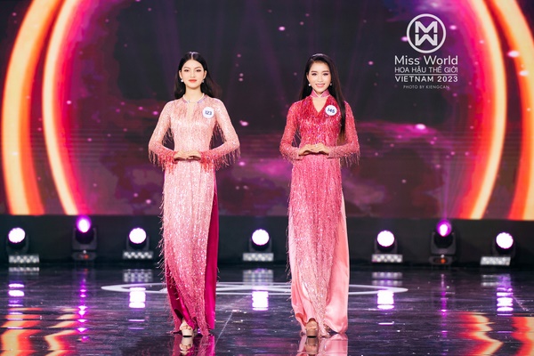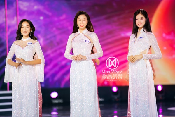 Trên sân khấu đêm Chung khảo toàn quốc Miss World Vietnam 2023, BST Áo Dài với chất liệu voan và ánh kim của NTK Ngô Nhật Huy mang tên “Ngân Hà” dưới sự trình diễn của 30 gương mặt thí sinh Miss World Vietnam được NTK dầy công đầu tư, chăm chút đã mang lại một dáng vẻ rất khác- Một vẻ đẹp yêu kiều, khó lẫn trong màn trình diễn Áo dài mang chủ đề “Giấc mơ” của Miss World Vietnam 2023.