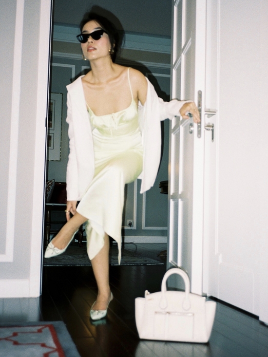 Hà Trúc tận hưởng ngày cuối tuần với chiếc túi thân thuộc không thể thiếu đến từ nhà Bally cùng đôi giày cao gót quai chéo tiện dụng. Không quên người bạn thân là chiếc máy ảnh film, cô nàng tỏa sáng trên những con phố, săn tìm điểm xinh đẹp trong đời sống thường ngày.