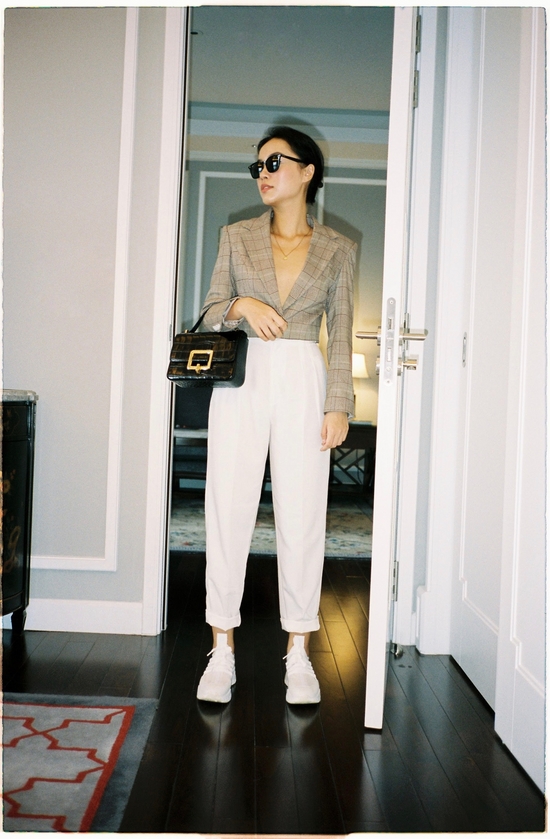 Thứ năm cá tính hơn hết với phong cách Menswear đầy quyến rũ. Kết hợp giữa vẻ mạnh mẽ nhưng vẫn nữ tính, năng động nhưng thanh lịch, Hà Trúc đã thể hiện rõ tiêu chí của nhà Bally “Nơi thời trang gặp ứng dụng”. Thoải mái bên đôi sneakers có trọng lượng siêu nhẹ với chiếc túi xách da sang trọng cao cấp, thật không khó để thu hút mọi ánh nhìn từ chốn công sở đến những chiều dạo phố với bạn bè.