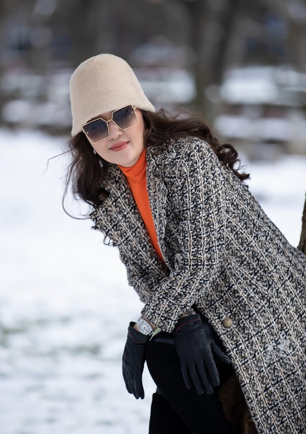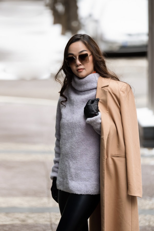 Trong những set đồ mùa Đông, Hoàng Thanh Nga cũng khẳng định hình ảnh biến hoá cực chuẩn, vừa giữ ấm vừa phong cách. Là một nữ doanh nhân hoạt động trong lĩnh vực trang sức, thời trang, Hoàng Thanh Nga có phong cách ổn định và chú ý với khả năng mix&match cực chuẩn.