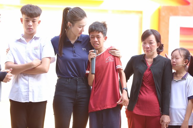 Á hậu Hạnh Nguyên cũng bật khóc nức nở khi nghe Bảo Ngọc chia sẻ về cha. Cô đứng cạnh an ủi và nắm chặt tay anh em Bảo Ngọc với hy vọng có thể sẻ chia phần nào những cảm xúc không vui mà các em đang đối diện. Hạnh Nguyên cho biết bản thân là một fan cứng của Mái ấm gia đình Việt và chưa bao giờ kìm được nước mắt khi chứng kiến hoàn cảnh khó khăn của các nhân vật.