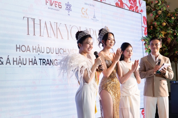 Trên sân khấu, top 3 Hoa Hậu Du Lịch Việt Nam Toàn Cầu 2024 bày tỏ cảm xúc về cuộc thi, đồng thời gửi lời cảm ơn đến khán giả, các đơn vị truyền thông và đạo diễn kiêm nhà sản xuất cuộc thi là Phạm Duy Khánh.