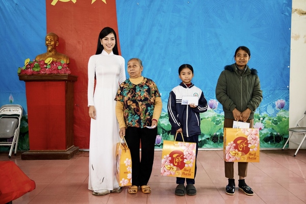 Sau khi kết thúc buổi giao lưu tại trường tiểu học, Á hậu Hoàng Nhung tiếp tục hành trình lan tỏa yêu thương của mình bằng những hoạt động thiện nguyện ý nghĩa ở quê Ngoại. Á hậu Hoàng Nhung đã trao tặng cho bà con nghèo, có hoàn cảnh khó khăn tại xã Nghiêm Xuân những phần quà và hiện kim giá trị nhằm giúp đỡ phần nào cuộc sống của người dân nơi đây.