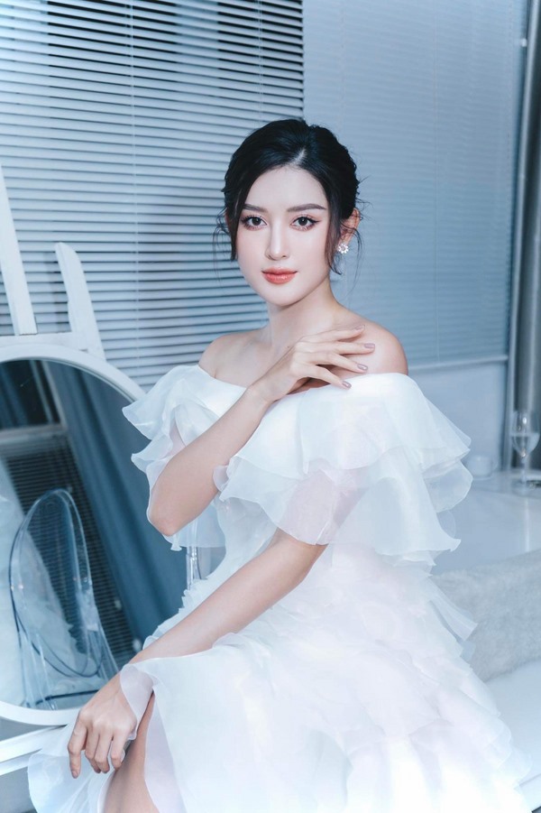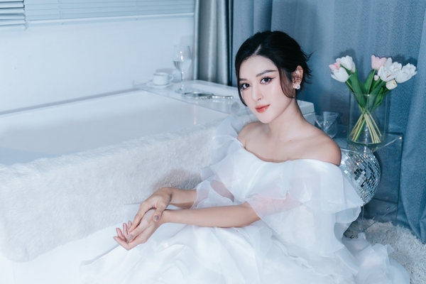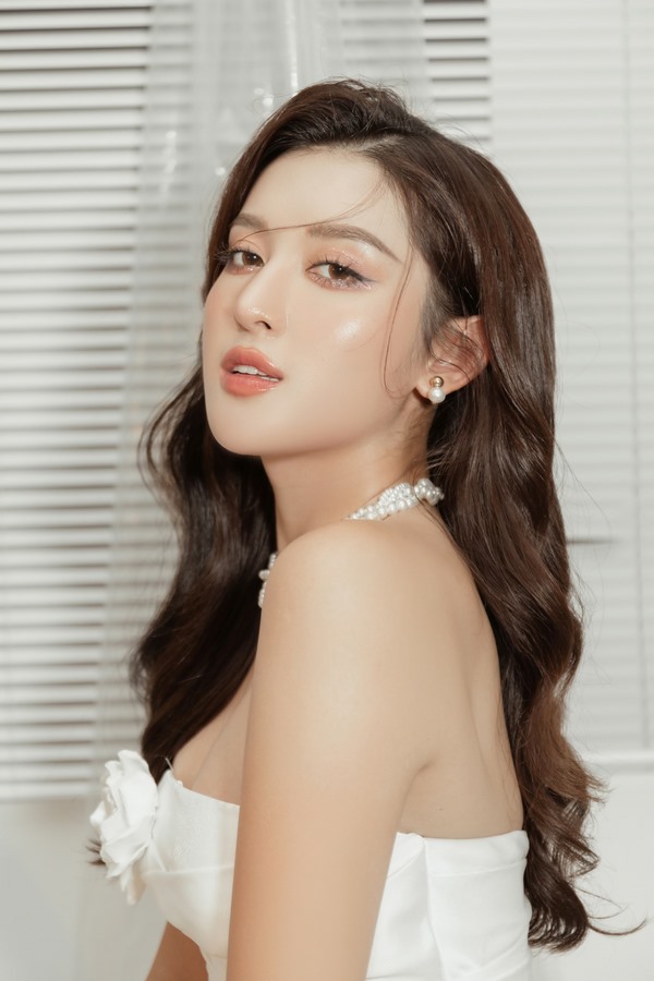 Những phụ kiện như dây chuyền, giày cũng mang màu trắng ton-sur-ton, hoàn thiện phần nhìn cho người đẹp. Phong cách ngọt ngào, nhẹ nhàng vốn là thế mạnh của á hậu và cô mỗi ngày luôn khiến khán giả bất ngờ với nhan sắc ngày càng thăng hạng của mình.