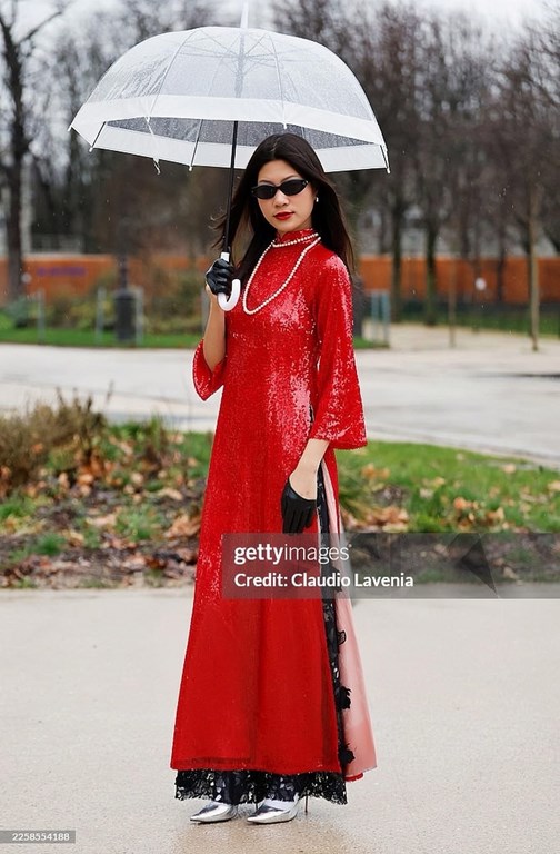 Từ những kỳ vọng đó, vừa qua, Giang Phùng đã có cơ hội trực tiếp hòa mình vào không khí thời trang cao cấp trong khuôn khổ Paris Haute Couture Week Spring–Summer 2026, nơi quy tụ những nhà mốt danh tiếng cùng giới chuyên môn hàng đầu thế giới. Ngay từ lần tham gia buổi Street Style đầu tiên, Giang Phùng đã nhanh chóng thu hút sự chú ý của giới thời trang quốc tế. Phong cách street style cá tính, hiện đại của Á quân VNTM 2025 liên tục được các nhiếp ảnh gia ghi lại và đăng tải trên Getty Images – nền tảng hình ảnh thời trang uy tín hàng đầu thế giới. Đáng chú ý, trong một số lần xuất hiện tại Paris, Giang Phùng lựa chọn diện áo dài Việt Nam, tạo nên điểm nhấn khác biệt giữa không gian thời trang quốc tế. Chia sẻ về lựa chọn này, Giang Phùng cho biết cô mong muốn mang đến hình ảnh vừa hiện đại vừa đậm bản sắc Á Đông, đồng thời góp phần quảng bá nét đẹp văn hóa Việt Nam thông qua thời trang. Sự xuất hiện của tà áo dài trên đường phố Paris đã thu hút sự quan tâm của giới nhiếp ảnh và để lại ấn tượng đặc biệt trong mắt các fashionista quốc tế.