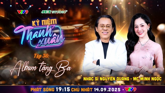 Tập 36 Kỷ Niệm Thanh Xuân với nhạc sĩ Nguyễn Quang được phát sóng vào lúc 19h15, Chủ Nhật ngày 14/9/2025 trên kênh VTV9. Chương trình do VTV9 và Jet Studio phối hợp thực hiện.