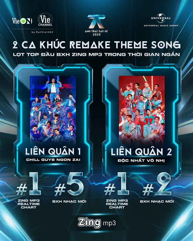 Âm nhạc là yếu tố cốt lõi làm nên sức nóng của chương trình Anh Trai “Say Hi” 2025. Toàn bộ 6 ca khúc ra mắt trong tập 2 đều xuất hiện trên YouTube Charts Việt Nam – một minh chứng rõ ràng cho sức hút lan tỏa của chương trình cũng như sự đón nhận nồng nhiệt từ khán giả. Trong đó, Người Như Anh Xứng Đáng Cô Đơn nhanh chóng giành vị trí #1 YouTube Charts Vietnam, leo thẳng Top 1 iTunes Chart sau 1 ngày đăng tải, khẳng định vị thế ca khúc dẫn đầu. Các tác phẩm còn lại cũng lần lượt ghi dấu với thứ hạng ấn tượng: Hermosa (#7), Người Yêu Anh Chưa Sinh Ra (#11), Thiêu Thân (#12), So Good (#18) và Chạm (#22). 3/6 bài hát lọt top thảo luận nhiều nhất về âm nhạc sau 72h lên sóng ( Theo nguồn: YouNet Media). Mỗi ca khúc mang một màu sắc, từ ngọt ngào, sâu lắng đến sôi động, nóng bỏng. Tất cả cùng nhau tạo nên một bức tranh âm nhạc đa sắc, chạm đến nhiều tầng cảm xúc khác nhau của khán giả.