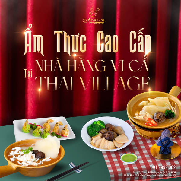 Nhà hàng Thai Village với thực đơn phong phú, hội tụ những món ăn tinh túy từ bào ngư và vi cá – hai nguyên liệu quý hiếm và đắt đỏ. Dưới bàn tay tài hoa của đội ngũ đầu bếp giàu kinh nghiệm, mỗi món ăn không chỉ là một tác phẩm nghệ thuật mà còn là sự hòa quyện tuyệt vời của hương vị.