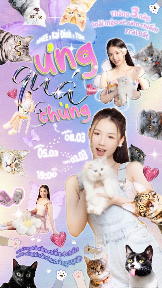 AMEE bất ngờ tung poster “nhá hàng” cho một dự án mới mang tên Ưng Quá Chừng. Dự án mở màn năm 2023 của AMEE sở hữu “giao diện” cực đáng yêu với rất nhiều chú mèo vây quanh, nữ ca sĩ xuất hiện ở vị trí trung tâm cùng tạo hình trẻ trung, gần gũi.