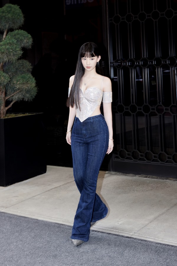 Tham dự buổi tiệc chào mừng các khách mời đặc biệt do Tiffany & Co. tổ chức, AMEE chọn trang phục trẻ trung và đơn giản, nhưng vẫn phá cách và đầy bất ngờ. Nữ ca sĩ diện áo từ chất liệu sequin lấp lánh, nổi bật với những đường cắt ngực, eo tinh tế và khoe vai trần quyến rũ. Nếu thường ngày, khán giả đã quen thuộc với một AMEE “em bé” cực ngọt ngào, hay phong cách Y2K dễ thương, thì AMEE tại sự kiện của Tiffany & Co. lại mang thần thái trưởng thành, táo bạo hơn hẳn.