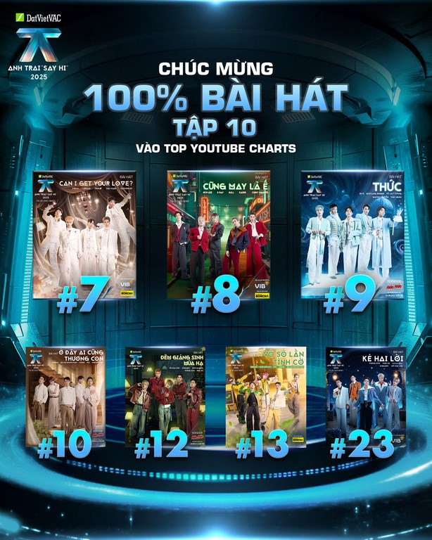 Sau khi phát sóng tập 9 và tập 10, Anh Trai “Say Hi” 2025 tiếp tục khẳng định sức hút vượt bậc trên thị trường âm nhạc với hơn 3 tỷ lượt xem trên các nền tảng Youtube, Facebook, TikTok và VieON . Tổng tương tác của chương trình đã vượt 161,000,000 cùng hơn 8,000,000 lượt thảo luận (theo YouNet Media), trở thành tâm điểm chú ý của khán giả.