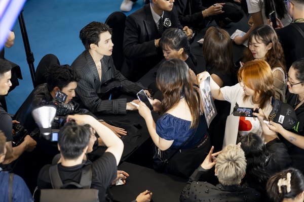 Xuất hiện tại sự kiện, Anh Tú Atus diện bộ vest xám đen dài toát ra khí chất tổng tài. Nam chính Gặp Lại Chị Bầu chưa từng làm người hâm mộ thất vọng về mặt visual. Anh giữ đúng phong độ và thu hút sự chú ý của đông đảo khán giả.
