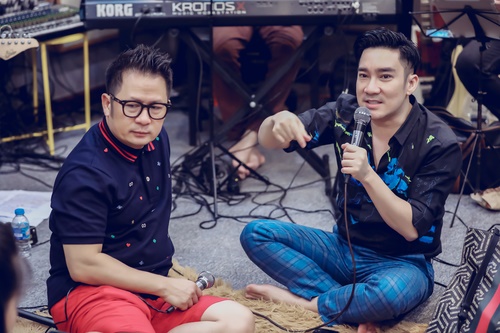 Ngoài ra, buổi tập nhạc của Quang Hà còn có ông bầu Quang Cường, nhạc sĩ Nam Lee (Ảnh 168A7804.jpg – tác giả ca khúc Mệt rồi em ơi), ca sĩ Thu Ba (đeo kính, áo đỏ – Trưởng nhóm nhịp điệu) cùng dàn nhạc hùng hậu đang tập trung hết mình với mong muốn “Hà show” được diễn ra một cách chỉn chu nhất.