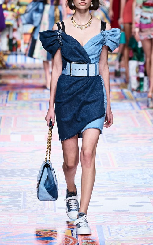 Denim vốn là chất liệu chẳng bao giờ lỗi thời, bởi thế mà mặc ở thời điểm nào cũng hợp lý. Tuy nhiên, trong mùa Xuân Hè 2021 này, các nhà mốt như Burberry, Dolce&Gabbana, Versace…lại ứng dụng chúng một cách hết sức ấn tượng. Suy nghĩ về một chất liệu có phần cứng nhắc được tháo bỏ khi kết hợp với nhiều chất liệu khác ren mỏng, hay thiết kế dạng yếm tạo nên một vẻ khác lạ cho denim. Bên cạnh đó, sáng tạo thrift như nhà D&G càng khẳng định nét phóng khoáng, bụi bặm đầy phong cách cho chất liệu này.