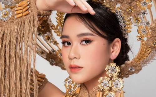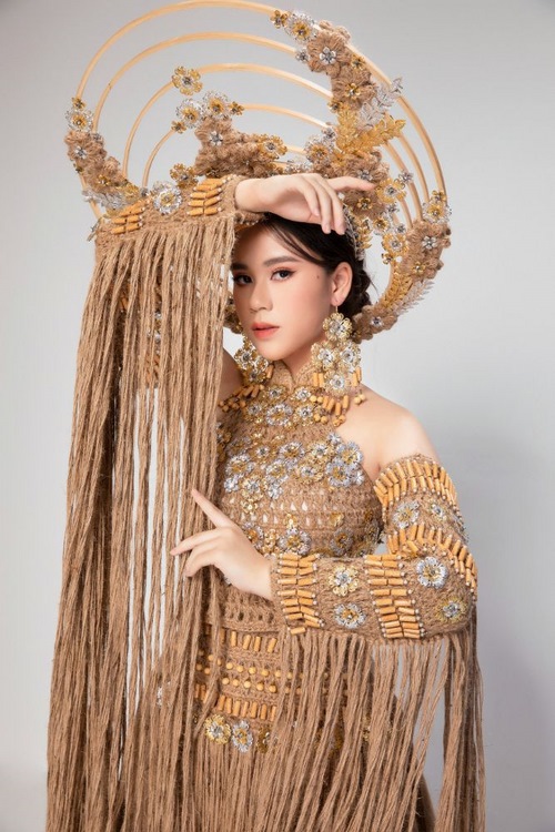 Miss Eco Teen Việt Nam Vũ Huyền Diệu đẹp lộng lẫy trong bộ trang phục về Môi trường làm từ chất liệu đay vô cùng ấn tượng của Nhà thiết kế- Ông trùm Hoa hậu Việt Hùng.