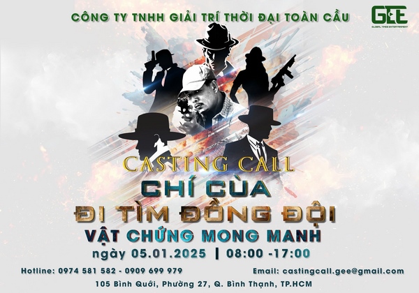 Được biết, Casting “Chí Cùa đi tìm đồng đội” sẽ diễn ra vào ngày 5/1/2025 (từ 8:00 đến 17:00) tại Công ty TNHH Giải trí Thời Đại Toàn Cầu – GEE Entertaiment, số 105 Bình Quới, phường 27, Bình Thạnh, TPHCM.