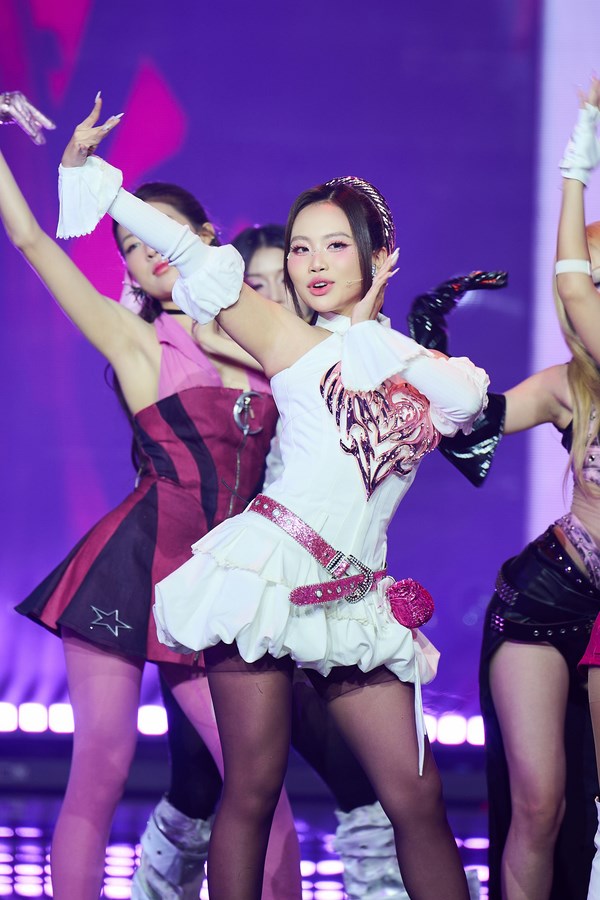 Đặc biệt, một số layout thể hiện rõ tinh thần high-fashion khi đẩy mạnh yếu tố sáng tạo, sử dụng kỹ thuật đính đá, ánh nhũ hoặc tạo điểm nhấn bằng chi tiết tóc và phụ kiện bắt sáng, khiến visual của Phương Mỹ Chi trở nên lộng lẫy, ấn tượng ở mọi góc nhìn. Chính sự đa dạng và tính toán kỹ lưỡng này đã giúp Phương Mỹ Chi luôn giữ được sự tươi mới qua từng tiết mục, đồng thời khẳng định đẳng cấp của bộ đôi Khoa Nguyễn và Bình Piguet – những người đứng sau toàn bộ quá trình kiến tạo hình ảnh, biến mỗi lần xuất hiện của Chi thành một khoảnh khắc đáng nhớ.