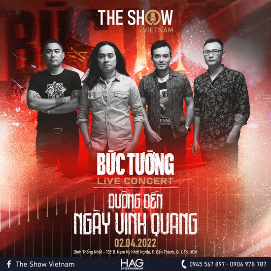 Tối 2/4/2022 sắp tới, tại Dinh Thống Nhất, ban nhạc Rock huyền thoại của Việt Nam – Bức Tường – sẽ chính thức mang đến live concert Đường Đến Ngày Vinh Quang.