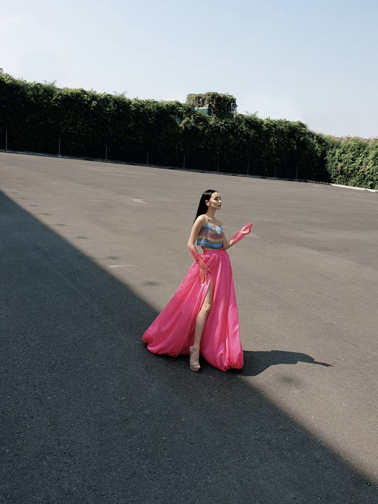 Xuất hiện tại vòng sơ khảo Hoa hậu Hoàn vũ Việt Nam 2022, Bùi Linh Chi gây ấn tượng với chiếc áo lục sắc đi cùng chân váy hồng quyến rũ. Người đẹp mong muốn lan toả quyền bình đẳng giới tại cuộc thi.