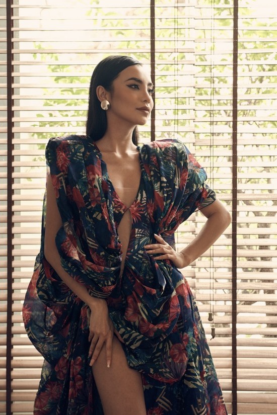 Người đẹp xuất thân từ The Face Vietnam thu hút bởi thần thái sắc lẹm, trong một thiết kế hoạ tiết độc đáo cùng những đường cắt xẻ táo bạo đầy quyến rũ. Không sở hữu một chiều cao nổi trội nhưng bù lại Linh Chi mang vẻ đẹp sắc sảo, nụ cười tỏa nắng cùng phong cách thời trang vô cùng cuốn hút.