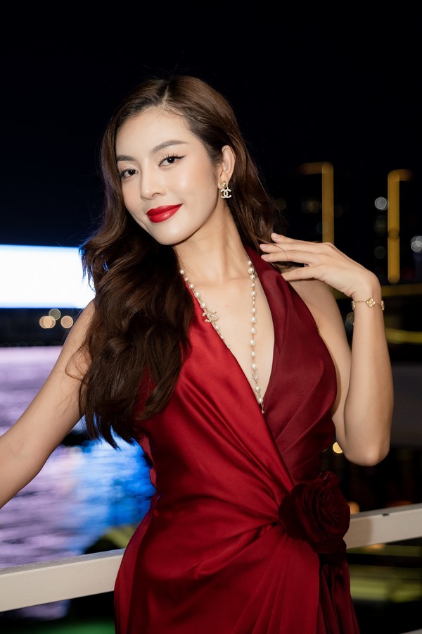 Tham gia buổi tiệc có sự xuất hiện của Hoa hậu Bùi Quỳnh Hoa, Á hậu Hoàng Nhung, người đẹp Bùi Lý Thiên Hương. Cả 3 đọ sắc ấn tượng với nhau mỗi người một vẻ. Nếu như Bùi Quỳnh Hoa hoá quý cô cổ điển sang chảnh trong bộ vest vô cùng gợi cảm thì Hoàng Nhung lại hóa nàng công chúa thuần khiết. Còn với Bùi Lý Thiên Hương lại nổi bật trong một thiết kế tông đỏ nóng bỏng, gợi cảm.