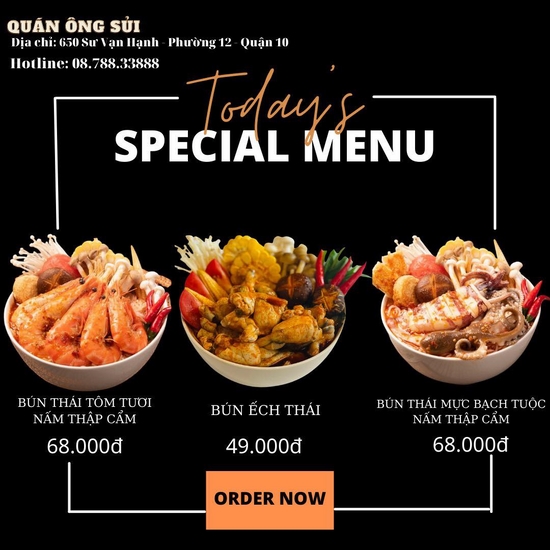 Lưu ngay toạ độ thiên đường ẩm thực Thái trên con đường sầm uất Sư Vạn Hạnh với cái tên thân thương: “Quán Ông Sủi”. Đến ngay đây để đội ngũ nhân viên có thể được phục vụ bạn chu đáo nhất với những món ăn bổ dưỡng và chất lượng.