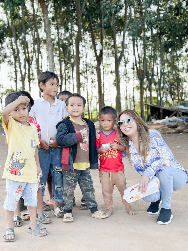Bên cạnh đó, nữ ca sĩ cũng tổ chức trao phát những phần quà ý nghĩa cho bà con đồng bào còn nhiều khó khăn. Tại xã Tu Mơ Rông và Kon Rẫy của tỉnh Kon Tum, ca sĩ Cam Thơ đã phát hơn 1.000 phần quà đến đồng bào nơi đây. Nữ ca sĩ cũng trao tặng xe đạp, hỗ trợ kinh phí giúp đỡ cho các trẻ em có hoàn cảnh khó khăn đến trường. Trong 3 tuần trở lại Việt Nam, theo kế hoạch, vợ chồng nhạc sĩ Lê Quang – ca sĩ Cam Thơ sẽ dành trọn thời gian để đi từ thiện, giúp đỡ bà con vùng Kon Tum, PLeiku, Huế và các mái ấm người già neo đơn, trẻ em mồ côi.