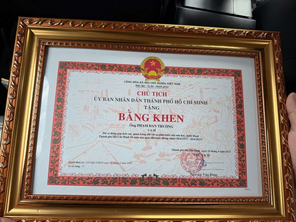 Trước thềm liveshow kỷ niệm 30 năm sự nghiệp “Dấu ấn thanh xuân”, ca sĩ Đan Trường đã vinh dự được Ủy ban Nhân dân TP.HCM trao tặng Bằng khen vì những đóng góp cho sự phát triển của văn học nghệ thuật Tp.HCM.