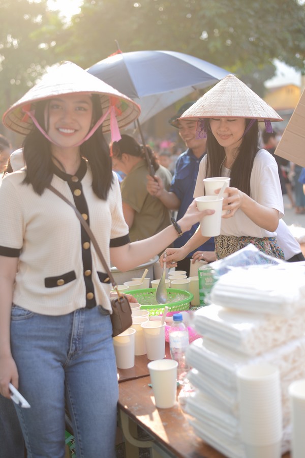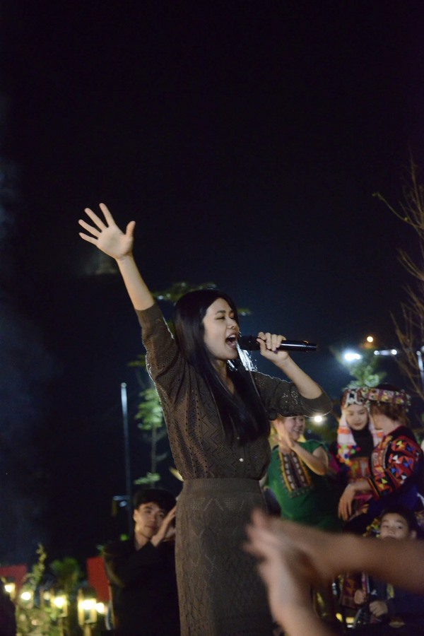 Về sự kết hợp với Hoa hậu Nông Thuý Hằng, Phúc Anh cho biết đó là một cơ duyên. Theo nữ ca sĩ, đàn em là Hoa hậu Các dân tộc Việt Nam nên phù hợp với sản phẩm lần này. “Hơn hết, khi theo dõi chặng đường hoạt động nghệ thuật của Hằng, tôi thật sự ấn tượng trước những tâm huyết và nỗ lực của cô gái này dành cho các em nhỏ, đặc biệt là ở vùng cao. Hằng lại là người dân tộc Tày – đại diện cho người đồng bào thiểu số mà dự án của tôi hướng đến. Hằng am hiểu văn hoá và tâm lý của người vùng cao. Mỗi khi có chuyện gì tế nhị, tôi thường sẽ tham khảo ý kiến của Hằng để đảm bảo mọi người luôn thấy thoải mái. Hằng thường bỏ qua danh hiệu hoa hậu của mình khi tham gia thiện nguyện và rất lăn xả cùng ekip, miễn bà con vui thì em ấy không nề hà. Có Hằng tham gia cùng, tôi như có thêm một người đồng đội cùng mình vượt qua những khó khăn để mang đến những điều ý nghĩa cho các bé và người dân vùng cao”, nữ ca sĩ bộc bạch.