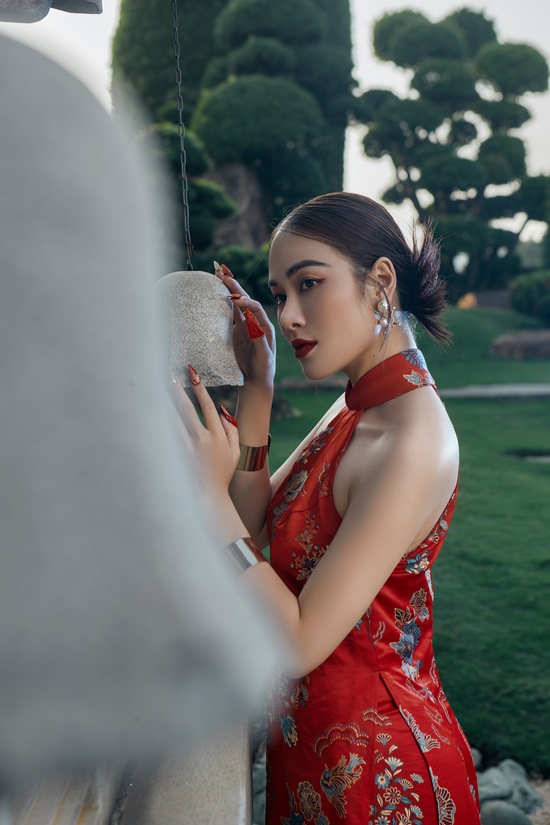 Đến kiểu áo dài hở vai màu đỏ bắt mắt cho thấy bước đột phá của bộ ảnh cũng như Tuyết Nga. Nữ ca sĩ vừa toát lên vẻ đẹp gợi cảm cuốn hút nhưng vẫn giữ được thần thái sang chảnh. Khí chất của Tuyết Nga từ thời đăng quang ngôi vị Hoa hậu Áo dài Việt Nam 2019 bùng nổ hơn cùng dạng trang phục phá cách độc lạ này.