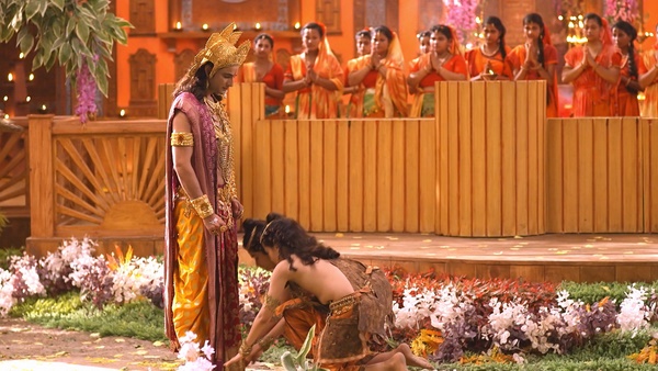 Một ngày kia, tên tuổi của hai chàng hiệp sĩ nhí đã bay đến kinh thành Ayodhya. Đức vua Rama rất tò mò về lai lịch của hai vị anh hùng nhỏ tuổi đã bắt gọn bọn thợ săn gây hại đến khu rừng trong suốt nhiều năm. Tuy nhiên, khi đức vua đến học viện và được chính hai cậu bé ấy chạm chân xin ban phước nhưng lại không thể nhận ra đó là kết tinh từ tình yêu tuyệt đẹp giữa ông và hoàng hậu Sita.