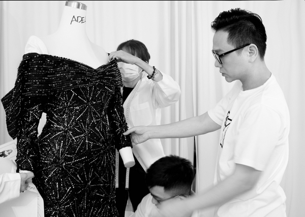 Từ tháng 12 cho tới tháng 1, hàng ngàn giờ đồng hồ đã được các nghệ nhân CÔNG TRÍ tận dụng để đính đá swarovski theo motif mô phỏng vẻ đẹp bừng sáng của pháo hoa trên bầu trời đêm. Cảm nhận rõ tâm huyết từ thương hiệu châu Á, Adele không ngần ngại đẩy lịch fitting (thử đồ) lên sớm hơn và hoàn toàn ngỡ ngàng trước thành quả từ team CÔNG TRÍ. Cô cũng quyết định đây sẽ là bộ cánh đầu tiên mà mình mặc đến từ châu Á, sánh vai cạnh loạt váy vóc từ các tên tuổi lâu đời trong làng Haute Couture.