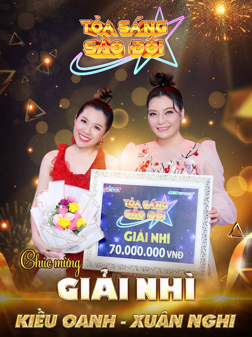 Khép lại hành trình chinh phục Tỏa Sáng Sao Đôi, kết quả của cả 12 đêm thi đã được công bố. Cặp đôi Xuân Nghi – Nguyễn Kiều Oanh cán đích ở vị trí thứ hai với tổng điểm là 416,5, nhận phần thưởng 70 triệu đồng.