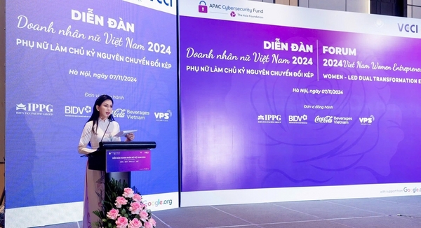Ngày 07/11, tại Hà Nội, hơn 150 đại biểu đến từ các Bộ ngành, Đại sứ quán, Tổ chức quốc tế, Hiệp hội doanh nghiệp và các nữ doanh nhân đã tham dự Diễn đàn Doanh nhân nữ Việt Nam 2024 để cùng nhau chia sẻ, thảo luận về vai trò của doanh nhân nữ, nữ lãnh đạo doanh nghiệp trong hành trình “chuyển đổi kép”. Diễn đàn do Hội đồng Doanh nhân nữ Việt Nam thuộc Liên đoàn Thương mại và Công nghiệp Việt Nam (VCCI) và Quỹ Châu Á tổ chức.