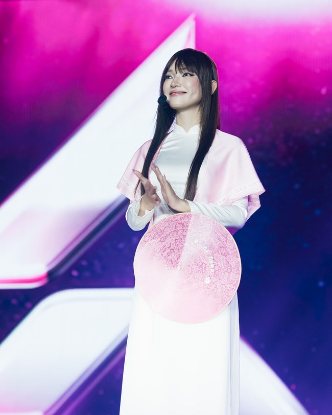 Kết lại với “The Real Aura”, cô hóa thân thành chiến binh tương lai, trang phục lấy cảm hứng futuristic với phần cầu vai lớn được tùy chỉnh, kết hợp chân váy mềm mại và tất hồng nổi bật – một điểm nhấn phá cách vừa nữ tính vừa mạnh mẽ. Đây là sân khấu thể hiện trọn vẹn nhất tinh thần chương trình: “Em Xinh”, vừa kiêu hãnh, vừa không ngừng biến hóa.