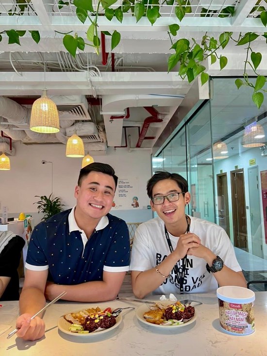 Chàng food blogger Lưu Hồng Đăng (bên phải) sáng tạo ra món cơm văn phòng dành cho những bạn lười ăn rau từ hạt nảy mầm.