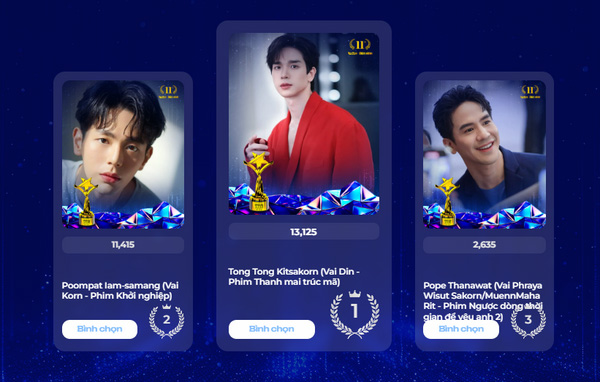 Trai đẹp Tong Tong Kitsakorn (vai Din – phim Thanh mai trúc mã) ngày càng chứng tỏ sức hút, chiếm trọn tình yêu thương của khán giả, liên tiếp dẫn đầu bảng xếp hạng ‘Nam diễn viên nước ngoài được yêu thích nhất’ – 13.125. Đối thủ nặng ký của Tong Tong chính là ‘người bạn đồng hương’ Poompat Iam-samang (vai Korn – phim Khởi nghiệp), sau nhiều lần ‘rượt đuổi’ tỉ số, kèn cựa top 1, tính đến chiều 30/12/2024 anh chàng ngậm ngùi xếp vị thứ 2 với 11.415 điểm. Tại bảng đấu ‘Nữ diễn viên nước ngoài được yêu thích nhất’, chị đại Bee Namthip hoàn toàn làm chủ cuộc chơi, giữ vững top 1 với 38.340 điểm và tương tự top 1 ‘Phim nước ngoài được yêu thích nhất’ vẫn tạm thời thuộc về tác phẩm Ấn Độ – Vệ nữ viên ngọc thần (5.130 điểm).
