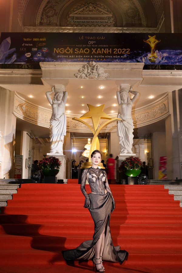 Chi Pu gây bất ngờ khi xuất hiện tại lễ trao giải Ngôi Sao Xanh 2022 diễn ra tại Nhà hát Thành phố, Q.1, TP. Hồ Chí Minh.