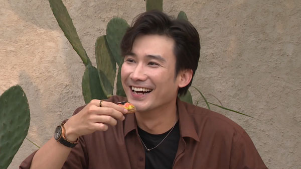 Mở đầu đại tiệc với món “Salmon Bruschetta” với thịt cá hồi tái trộn với dầu chanh sốt bơ kem bánh mì nâu khiến các thực khách vô cùng thích thú. Vừa ăn một miếng, Chí Thiện đã trầm trồ bởi sự mềm mịn của bánh mì và vị béo của bơ, vị ngon của sốt tái chanh. Ở món “Pan Seared Prawn Salad” hay còn gọi là Salad tôm áp chảo với phô mai giòn rụm, sốt chanh mật ong và có thêm hạt hoa anh túc khá đặc biệt. Trong khi Phát La tập trung thưởng thức món ăn thì Chí Thiện lại rất chăm chú nghe cô trợ lý chia sẻ về kiến thức ẩm thực.