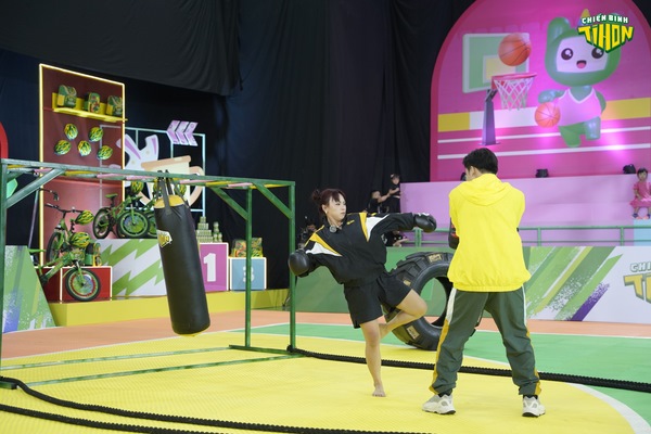 Nếu như khán giả vốn quen với hình tượng nữ tính của Khả Như trên màn ảnh thì bước ra sân Chiến Binh Tí Hon, nữ diễn viên đã thực sự ‘lột xác’. Không còn là những bộ cánh bồng bềnh tiểu thư, Khả Như đã đóng vai trò ‘đả nữ’ trong tiết mục của đội Xanh – Mèo Ngầu. Để bảo vệ cho Hari Won, Khả Như đã liều lĩnh ‘1 đấu 3’ với các đối thủ nặng ký. Cô nàng thực hiện nhiều động tác võ thuật mạnh mẽ, đặc biệt là cú bay người kẹp cổ khiến đối phương gục ngã. Được biết vì tập luyện quá nhiệt tình, trước giờ ghi hình Khả Như đã bị chấn thương. Tuy vậy, nữ diễn viên vẫn hoàn thành xuất sắc tiết mục của đội. Bên cạnh đó, Hari Won cũng trình diễn kỹ năng ném bóng rổ ‘bách phát bách trúng’ khiến các em bé phải bất ngờ, nể phục. Sự ngọt ngào tươi sáng của Hari Won cùng với màu sắc mạnh mẽ của Khả Như đã tạo nên đội Xanh – Mèo Ngầu.