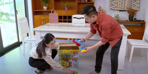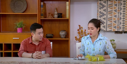 Lúc này, người vợ mua thuốc về tới, người chồng liền nổi giận khi cô vợ bắt con uống quá nhiều thuốc. Anh nói: “Con mình uống mỗi lần năm sáu viên thuốc rồi đó. Anh nói em, con mình chỉ mới có một tuổi. Em cho nó uống thuốc kiểu đó khoảng hai tuổi là lờn thuốc luôn”. Cô vợ giãi bày: “Đây là những loại thuốc tốt cho con. Cái này là vitamin A, B, C, D, rồi chưa tính là thuốc trị ho, thuốc kháng sinh. Bây giờ sức đề kháng của con yếu, bị bệnh hoài nên phải uống thuốc”.