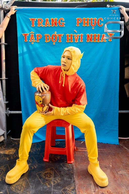 Song song, các Anh Trai mang đến loạt tạo hình độc đáo tại hạng mục Best Rehearsal Outfit, góp phần tạo nên không khí náo nhiệt, giải trí. Nổi bật nhất có Anh Trai NICKY gây chú ý khi hóa thân thành ca sĩ Phùng Khánh Linh với bộ tóc trắng xõa dài đặc trưng, tay ôm chiếc lược vàng choé khiến khán giả vừa nhìn đã bật cười. Cạnh đó, Anh Trai CAPTAIN BOY tạo điểm nhấn với tạo hình chú gấu Winnie-the-Pooh dễ thương vừa gần gũi vừa thích thú. Trong khi Anh Trai Quân A.P lựa chọn hình ảnh “ông cụ” diện bộ áo bà ba mộc mạc khi chạy chương trình. Đặc biệt, Anh Trai JSOL tiếp tục giữ vững “độ lầy” khi xuất hiện trong tạo hình mascot đôi dép khổng lồ, khiến các Anh Trai khác cười bò và chiếm sóng mạng xã hội. Trước đó, anh đã từng chiến thắng hạng mục này.