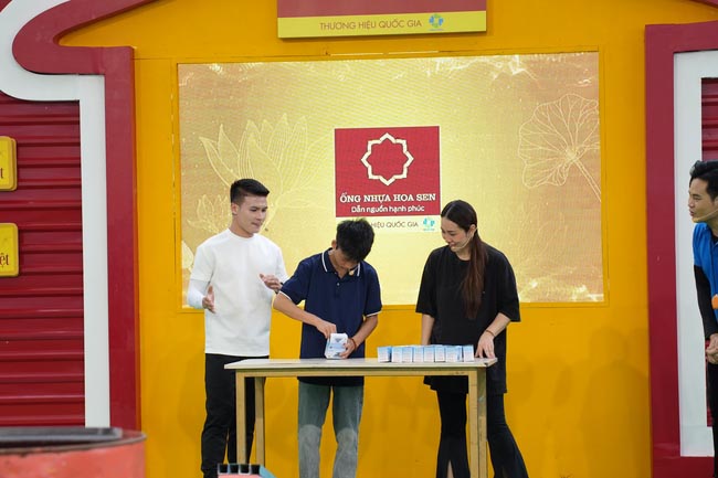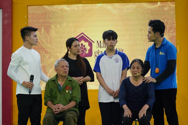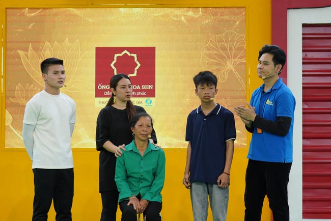 Không riêng gì Bảo Trâm Idol, cầu thủ Nguyễn Quang Hải cũng bày tỏ sự xót xa khi xem các đoạn clip giới thiệu về nhân vật. Đến tham gia ghi hình, Quang Hải đưa theo bà xã Chu Thanh Huyền để cùng san sẻ yêu thương với các em nhỏ. Bên cạnh đó, vợ chồng Nguyễn Quang Hải – Chu Thanh Huyền còn cùng MC Dương Hồng Phúc và các nghệ sĩ khách mời khác đại diện các gia đình nhận quyên góp từ các mạnh thường quân và khán giả địa phương.