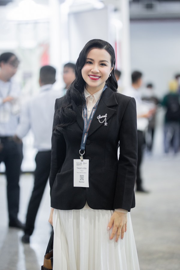 Trong vai trò là Chủ tịch Thục Uyên Foundation, Thục Uyên đã trở thành diễn giả chia sẻ về các hoạt động sản xuất bảo vệ môi trường tại The Future Energy Show Vietnam.