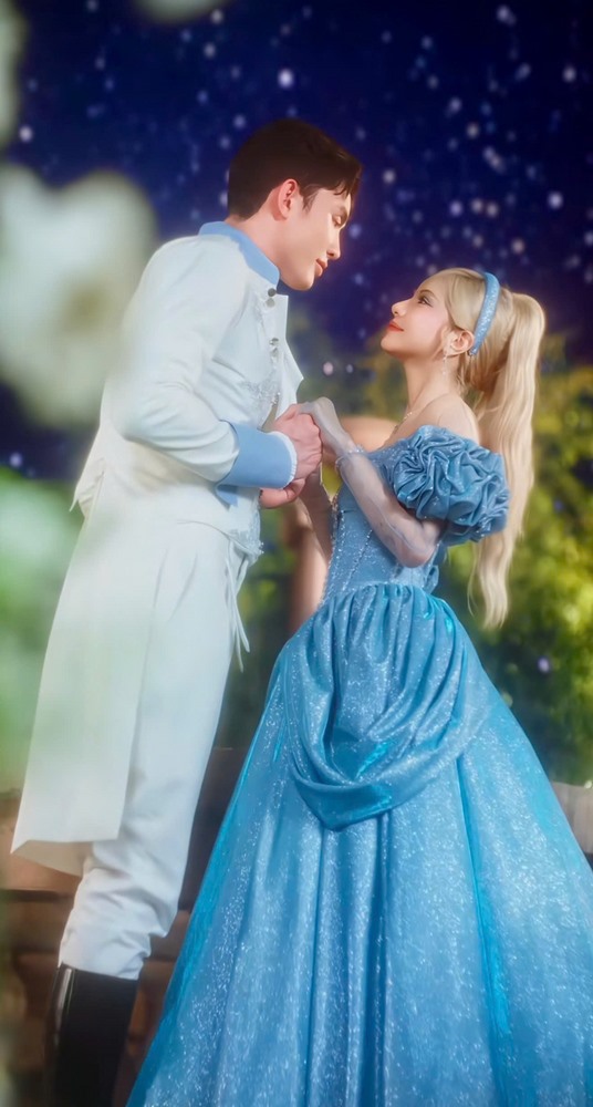 Điểm nhấn đầu tiên là cảnh Lọ Lem nhận được thiệp mời dự vũ hội. Với sự giúp đỡ của Bà tiên đỡ đầu, CiiN xuất hiện lộng lẫy trong chiếc váy dạ hội màu xanh pastel lấp lánh – thiết kế mang tính biểu tượng của Cinderella, cùng đôi giày thủy tinh lung linh. Cảnh biến hóa bí ngô thành cỗ xe được thực hiện với kỹ xảo đẹp mắt.
