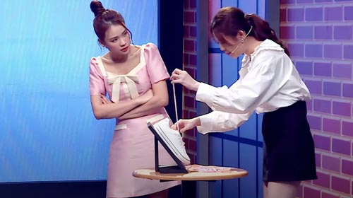 MC Sam đưa ra lời khuyên vô cùng duyên dáng dành cho nữ VĐV khiến cả trường quay phải bật cười: “Những đôi giày mà chị Thanh Vũ thắt chỉ được mang vào thôi chứ không có tháo ra được. Vì vậy chị đừng có bán giày nha sẽ không ai dám mua đâu”. Sau khi chiến thắng thử thách, TikToker Hạnh Tuyên cũng có chia sẻ: “Tuyên thấy thời trang hay bất cứ việc gì trong cuộc sống thì nó cũng sẽ luôn luôn thay đổi. Thay vì thắt dây giày truyền thống thì chúng ta có thể thay đổi để tạo được cá tính riêng và sự khác biệt cho bản thân”.