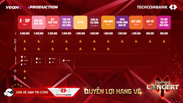 Nhóm vé VIP: X-VIP 1,2 (8.000.000 đồng/vé). Riêng loại vé này sẽ mở bán theo hình thức combo 10 vé.