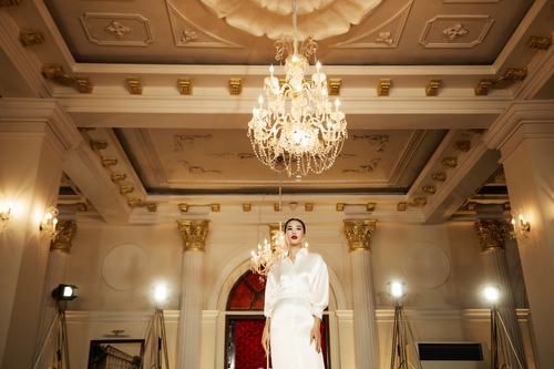Giữa không gian cổ điển là tinh hoa kiến trúc của địa danh, triết lý về sự giao hoà di sản được nhà thiết kế Công Trí và đạo diễn Việt Tú đẩy đến tận cùng trong nghệ thuật trình diễn – người mẫu phô diễn các sáng tạo lụa là theo phong cách catwalk thập niên: họ cầm bảng số, thuyết minh về từng mẫu thiết kế, thanh tú sải bước trong khán phòng mang đậm tinh thần Pháp thế kỉ XIX.