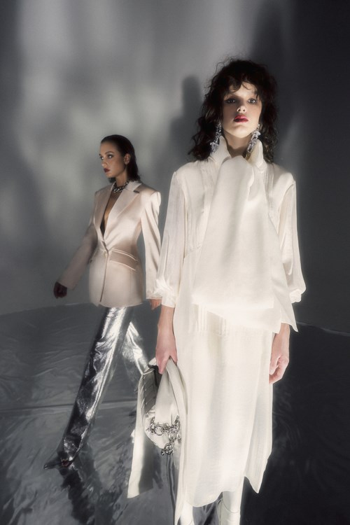 Đồng thời, trạng thái của người phụ nữ – trung tâm ý tưởng thiết kế – được sắp đặt khéo léo thông qua cách CONG TRI đặt để vị trí xuất hiện của các nhóm chất liệu. Sự tương phản trong việc sử dụng các chất liệu tơ mỏng nhẹ để dựng phom vải suit, vừa cho thấy kĩ thuật tinh xảo thương hiệu, đồng thời gửi gắm thông điệp về sự cân bằng giữ tính nam và nữ của những quý cô đương đại.